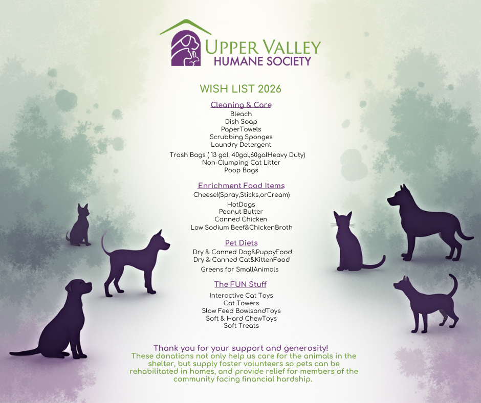 The Upper Valley Humane Society is a 501(C)3 organization. Federal Tax I.D. number: 23-7348710. All donations are tax deductible as permitted by law.